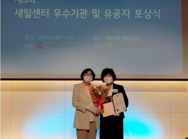 세종여성새로일하기센터(센터장 이희경, 이하 ‘세종새일센터’)가 지난 2일 여성가족부 주최 2020년 제9회 새일센터 우수기관 및 유공자 포상식에서 여성가족부 장관 표창을 받았다.