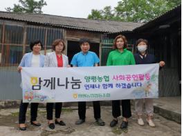 지난달 25일 강상면 집수리 봉사활동에 참여한 양평농협 조미영 팀장은 “양평군에서 좋은 뜻을 가지고 시작한 사업에 매년 함께 할 수 있어 보람을 느끼고 있으며, 어려운 이웃들을 직접 도와줄 수 있어 뿌듯하다. 많은 사람들이 나눔에 동참할 수 있도록 사회공헌에 앞장서겠다.”라며 소감을 전했다.