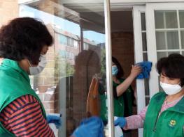 인천시 남동구 논현1동 행정복지센터(동장 전해진)는 코로나19 확산 방지를 위해 일시 운영이 중단된 지역 경로당의 환경정비와 방역활동을 펼치고 있다