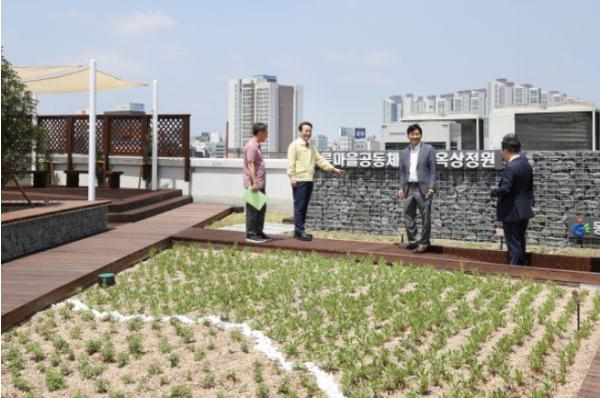 ‘모두 공유하고 누리는 열린사회 만들기’라는 이름의 이번 사업은 주민이용이 많은 공공건물 옥상에 녹지공간을 조성함으로써 열섬현상 완화 및 미세먼지 저감 등 기후변화대응에 적극 대처하고 주민들에게 쾌적한 쉼터를 제공하고자 추진됐다.