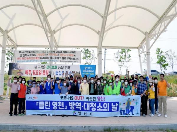 영천시(시장 최기문)는 5일 400명의 주민, 사회단체, 공무원들이 참석한 가운데 관내 읍·면·동별 대대적 대청소와 방역을 실시하는 ‘클린 영천’ 방역·대청소의 날을 통해 깨끗한 영천 만들기에 나섰다.