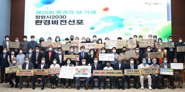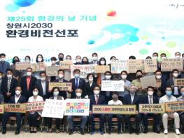 창원시(시장 허성무)는 5일 제25회 환경의 날을 맞아 미래 10년의 환경목표인 ‘창원시 2030 환경비전’ 선포식을 가졌다고 밝혔다. 이날 시의원, 시민, 환경단체, 전문가 등 60여명이 참석했으며, 환경분야 유공시민 표창도 있었다.