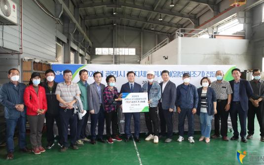 광명시(시장 박승원)는 농협중앙회 광명시지부(지부장 김판수)와 광명농협(조합장 이병익)과 함께 5일 농산물건조기 전달식을 가졌다.
