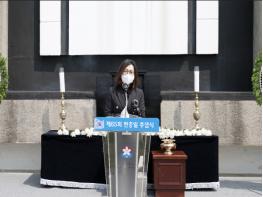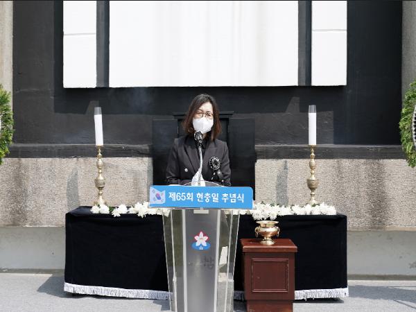 끝으로 “순국선열과 호국영령들이 ‘호국과 보훈’, 그리고 ‘헌신과 희생’의 정신으로 전쟁을 이겨나간 것처럼 코로나19와의 전쟁을 겪고 있는 지금 사회적 거리는 넓히고, 인권의 거리는 좁혀나가 지금의 국난을 슬기롭게 헤쳐 나가자”며 추념사를 마쳤다.