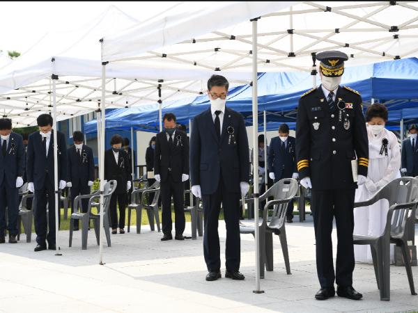 경북 영주시(시장 장욱현)는 지난 6일 개최된 ‘제65회 현충일 추념식’을 ‘코로나19’ 확산방지와 생활 속 거리두기 실천에 따라 간소하게 진행했다.
