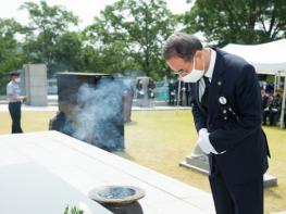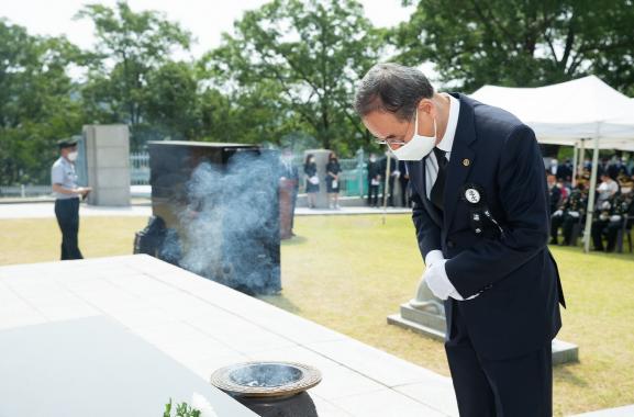 이날 추념식은 코로나19의 예방하기 위해 장세용 구미시장을 비롯한 보훈단체장, 구자근 국회의원, 김영식 국회의원, 기관ㆍ단체장, 도ㆍ시의원, 국가유공자와 유족 등 최소한의 인원만 참석한 가운데 10시 정각에 전국적으로 울리는 사이렌 취명에 맞춰 1분간 일제히 묵념을 올렸다.