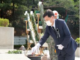 특히 코로나19로 인한 생활속 거리두기 차원에서 예년보다 대폭 줄어든 50여명이 참석했으며, 국립 대전현충원 참배도 생략하는 등 간소하게 진행됐다.