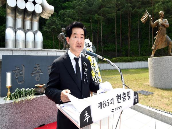 안병용 시장은 추념사에서 올해는 한국전쟁 70주년으로 이곳 현충탑에서 애국을 생각해본다며, “자신을 희생하면서 나라를 위해 희생하신 순국선열의 고귀한 희생정신을 이어 나가고, 현재 코로나19로 모두가 힘든 시기를 겪고 있지만, 사회적 거리두기에서 생활 속 거리두기까지 이웃에 대한 배려와 희생정신으로 대한민국은 이 어려움을 다시 한번 이겨낼 것”이라고 밝혔다.