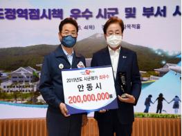 안동시가 2019년 경북도정 역점시책 시군평가에서 ‘최우수기관’으로 선정되는 쾌거를 이뤘다. 이로써 2015년도 평가(2016년에 수상) 이후 4년 만에 다시 최우수 기관 자리를 차지했다. 2017년과 2018년 평가에서도 내리 우수기관에 선정되며, 꾸준히 ‘일 잘하는 시(市)’로 평가받았다.