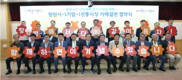 창원시(시장 허성무)는 8일 코로나19 경제 피해 조기 극복과 전통시장 활성화 지원을 위해 관내 11개 대표 기업과 전통시장이 참여한 가운데 자매결연 협약을 체결했다고 밝혔다.