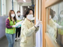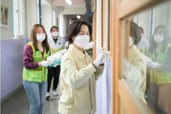 “우리 아이가 앉을 의자, 공부할 책상, 밥 먹을 식당이라고 생각하면 걸레질하는 손에 힘이 더 들어가고, 친구와 뛰어 놀 운동장이라고 생각하면 친환경 방역호스 를 꼼꼼하게 챙기게 된다.”며 “집에서 안전을 걱정만 하는 대신 안전하게 만들어 주자는 마음으로 직접 나서 더욱 최선을 다해 방역 중”이라고 방역 봉사 중인 한 학부모는 말했다.