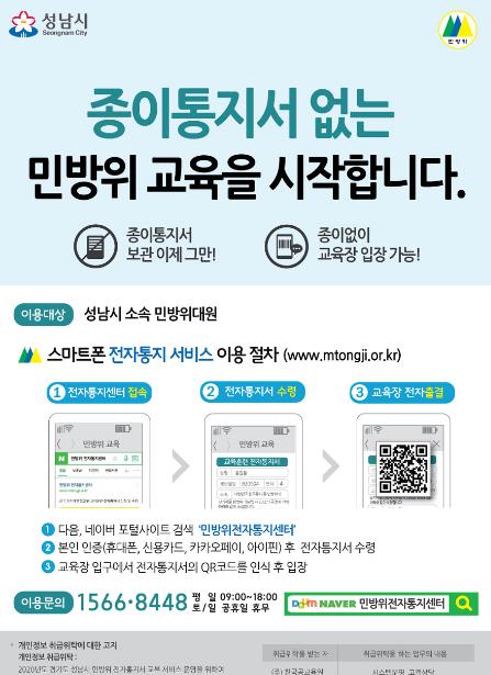 성남시는 민방위 교육 전자 통지·출결 시스템을 도입한다고 6월 9일 밝혔다.