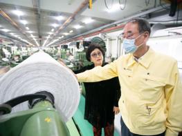 장 시장은 6월 8일에 벨벳섬유 제조업체 ㈜영도벨벳(대표 류병선)과 알루미늄 압출제조?금형가공 업체인 ㈜미래인더스(대표 황경희)를 방문하여 그간 코로나19로 어려움은 없었는지 근로자들과 소통하며 현장의 다양한 목소리를 듣고, 격려하는 시간을 가졌다.