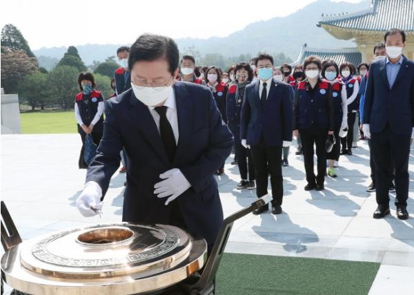 특히 이날 장 청장은 자유총연맹 회원과 함께 현충원을 참배한 뒤, 최근 안중근 의사의 필체로 교체된 현충문을 보며, 다시 한번, 호국 및 보훈 정신을 되새기는 의미 있는 시간을 가졌다.