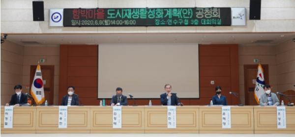 인천시 연수구(구청장 고남석)가 지난 8일 오후 2시 연수구청 3층 대회의실에서 관계전문가와 용역사 관계자 등이 참석한 가운데 함박마을 도시재생활성화계획(안)에 대한 비대면 주민공청회를 개최했다.