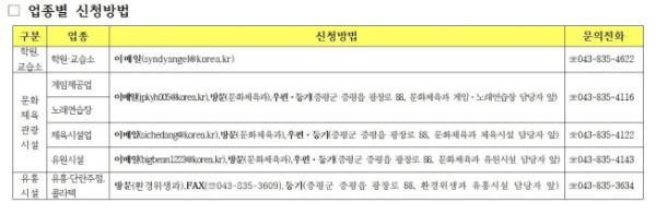 ▲게임제공업장, 노래연습장, 체육시설업(당구장·무도학원·체육도장 등), 유원시설업 등 문화체육관광시설 ▲학원·교습소 ▲유흥시설(유흥·단란주점, 콜라텍 등) 등 200여 개 시설이 지원대상에 해당한다.