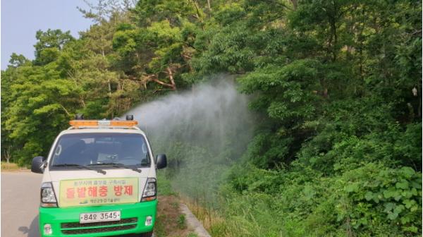이번 방제는 해당 읍면의 신청을 받아 진행되며, 8일 현재 15개소가 신청을 완료한 가운데 방제는 농업기술센터 동부농업지원팀이 동부지역 플랫폼 구축사업을 통해 구입한 다목적 방제차량을 활용해 실시한다.