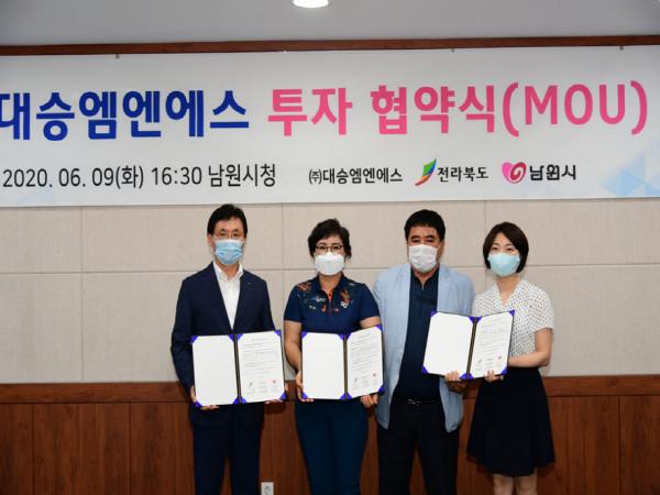 ㈜대승엠엔에스의 신규투자로 남원시는 신규 일자리 창출과 지역주민의 소득증대에 긍정적 영향을 미칠 것으로 기대하고 있으며 지역경제 순환과 활성화에도 기여할 것으로 보고 있다. 아울러 이번 체결을 시작으로 올해 6월 준공을 앞둔 남원사매일반산업단지(587천㎡, 325천원)가 조기 분양될 수 있도록 전행정력을 동원 기업유치에 박차를 가할 계획이다.