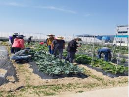 기존에 정착한 선도농업인들이 체류형 농업창업센터에 입교한 귀농인들이 함께 텃밭을 재배하고 멘토링한다.