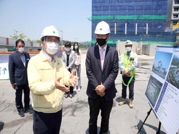 허 시장은 현장을 둘러보며 코로나19 예방 및 확산방지를 위한 건설현장 대응 가이드라인이 잘 지켜지고 있는지 살폈다. 또 본격적인 더위가 시작되는 만큼 마스크 착용으로 인한 온열질환 사고가 발생하지 않도록 안전 관리에 만전을 기해줄 것을 당부했다.