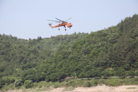 익산산림항공관리소(소장장준태)은 6. 09. ∼ 10일 산림사업 지원을 대비하여 초대형 항공기 화물운반 직무훈련을 진안군 정천면 일원에서 실시한다고 밝혔다.