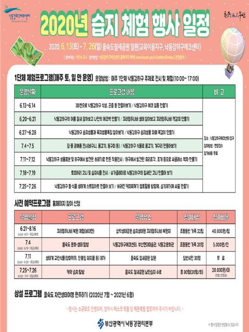 부산시 낙동강관리본부가 습지의 중요성에 대한 시민들의 관심을 높이고, 코로나19에 지친 생활에 활력소가 되기 위해 오는 13일부터 습지체험을 진행한다.