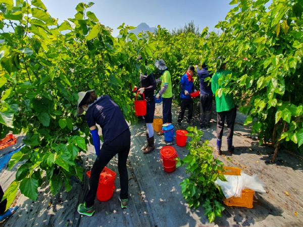 이날 농촌 일손 돕기는 신림면 신평리 오디 재배 농가에서 오디 수확작업을 했다.