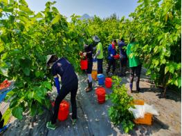도움을 받은 농가에서는 “코로나19영향으로 영농철에 외국인 근로자를 고용하기 힘들었는데 직원들이 이렇게 발 벗고 나서서 작업을 도와준 덕분에 수월하게 잘 할 수 있었다”며 고마움을 전했다.