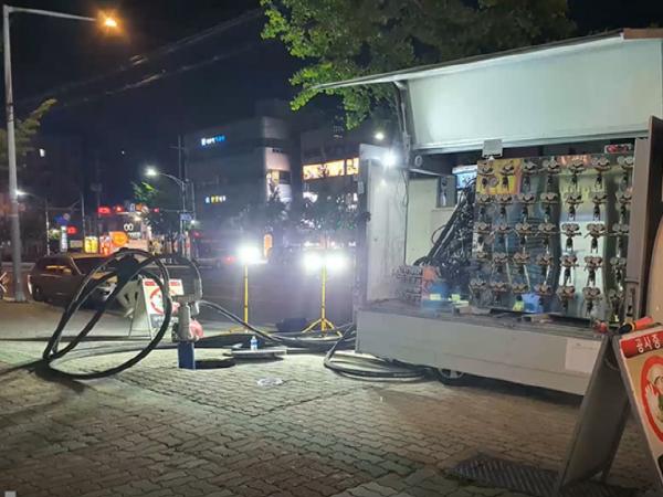 질소세척은 처음 시도되는 것으로 고압의 질소를 관 내부에 주입해 질소가스의 마찰력으로 이물질을 제거하는 특허공법이며, 지난 5월 20일 달서구 성당동 대성사 부근(소구역 151)에서 시범세척을 실시했다.