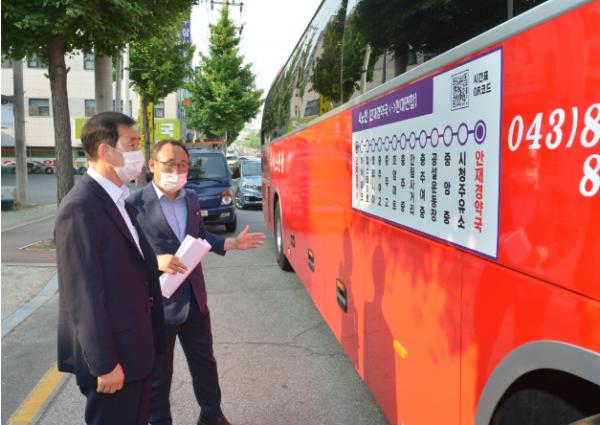 조 시장은 10일 평일 아침에 운행하는 ‘충주시 통학버스’에 탑승해 버스를 이용하는 학생들의 의견을 청취하고 코로나19 예방을 위한 철저한 차량 방역 등을 점검 및 당부했다.