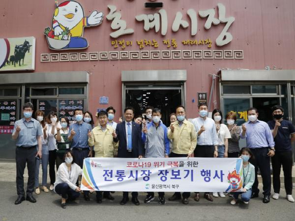 울산 북구는 10일 호계공설시장에서 코로나19로 인한 경기침체로 어려움을 겪고 있는 전통시장 활성화를 위해 전통시장 장보기 행사를 실시했다.