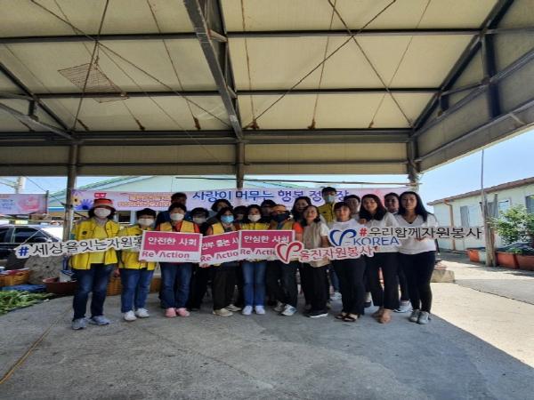 울진군(군수 전찬걸)은 지난 8일 후포전통시장에서 자원봉사자 20여명과 함께 ‘사랑이 머무는 행복정류장 사업’을 진행하였다.