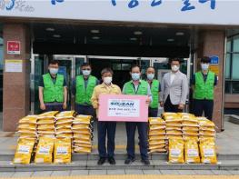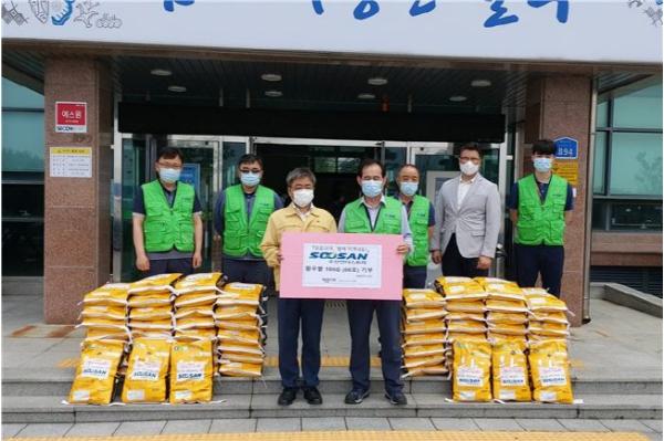 이날 지원한 백미는 ㈜수산인더스트리 및 직원들의 자발적 기부로 모아진 성금으로 마련되었다.
