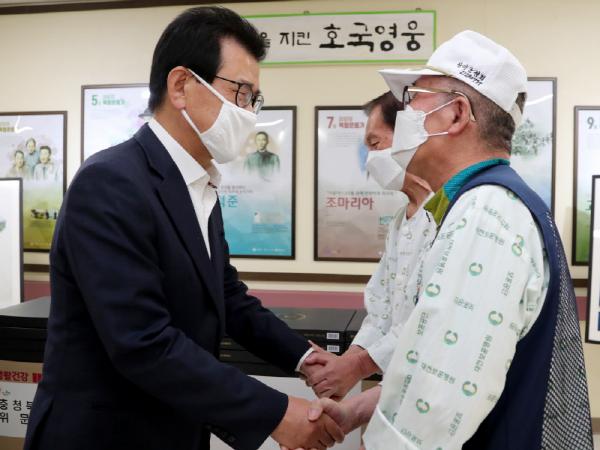 이시종 도지사는 6·25참전, 월남전 파병 등 국가유공자들의 나라를 위한 고귀한 희생과 헌신에 존경과 감사의 마음을 표하고, 따뜻한 손길을 내밀어 진심으로 쾌유를 기원했다.