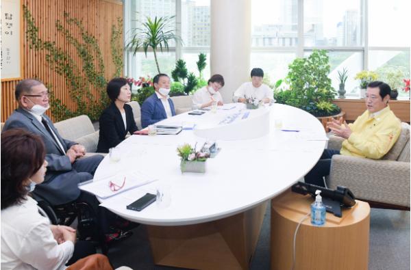 이용섭 시장과 광주장애인부모연대 김유선 회장, 김용목 장애인차별철폐연대회장, 최수정 부모연대 부회장, 정순임 북구부모연대지회장, 김미란 부모연대 법인이사 등은 11일 오전 시청 접견실에서 간담회를 가졌다.