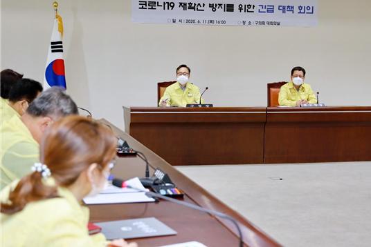 최근 금천구 지역 내 코로나19 감염자가 속출하고 있는 가운데, 금천구(구청장 유성훈)가 6월 11일(목) 오후 4시 ‘코로나19 재확산 방지를 위한 긴급대책회의’를 개최했다.