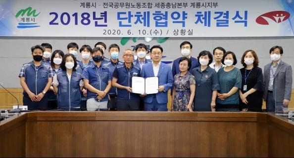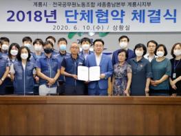 계룡시는 10일 전국공무원노동조합 세종충남본부 계룡시지부와 상호 존중하는 노사 관계를 약속하는 단체협약을 체결했다.