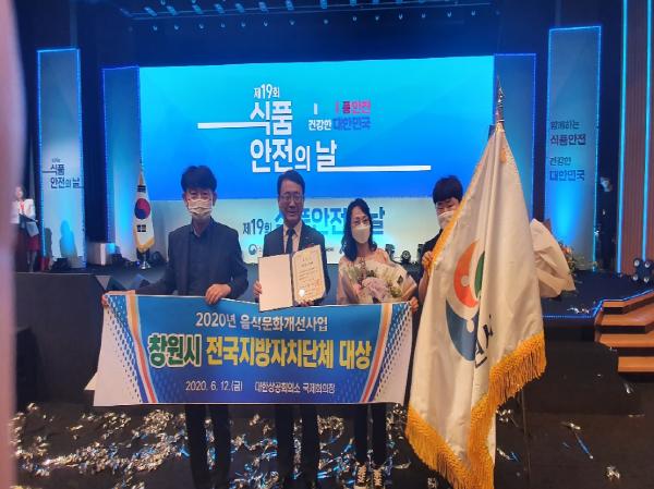 창원시(시장 허성무)는 12일 식품의약품안전처 주관으로 열린 ‘제19회 식품안전의 날 기념식’에서 음식문화개선사업 전국지방자치단체 대상인 국무총리상을 수상했다고 밝혔다.