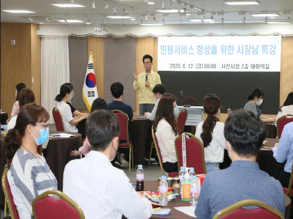 공직자로서 가져야 할 덕목과 민원인을 대하는 마음에 대한 명심보감 치정편(청렴, 신의, 근면)을 주제로 한 송도근 시장의 특강은 참석 직원들에게 다시 한 번 올바른 공직자 자세를 배우게 하여 뜻깊은 시간이 되었다. 특히 송도근 시장은 민원서비스 마인드 향상으로 지난해에 이어 좋은 평가를 받을 수 있도록 노력해 달라는 당부도 놓치지 않았다.