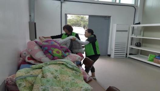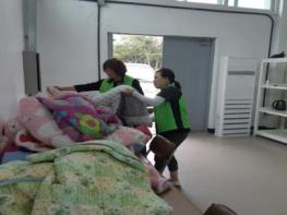 이날 지역사회보장협의체 회원들은 5가구에서 수거해온 20여개의 이불과 겨울 외투 등을 세탁했다.