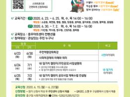 사회적경제 아카데미는 코로나19 확산 예방 차원에서 참여 인원을 최소화하기 위해 23일(화)부터 25일(목), 30일(화)부터 다음달 2일(목)까지 각각 3일간 2기에 나눠 진행된다.