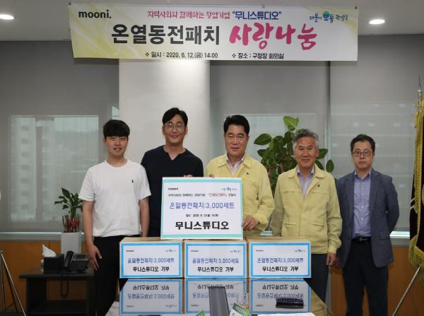 관악구와 무니스튜디오는 12일, 구청 5층 회의실에서 기부물품 전달식을 가졌다. 기부된 온열 동전파스는 종합사회복지관 등의 도시락 배달서비스를 통해 관내 취약계층 어르신 약 1,131명에게 전달될 예정이다.