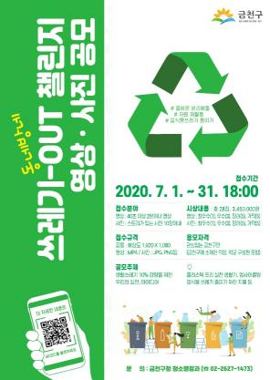 금천구(구청장 유성훈)가 올바른 쓰레기 분리배출, 자원의 재활용, 음식물쓰레기 감량에 대한 사회적 공감대 형성과 주민 참여를 유도하기 위해‘동네방네 쓰레기-OUT 챌린지 영상?사진 공모전’을 개최한다.