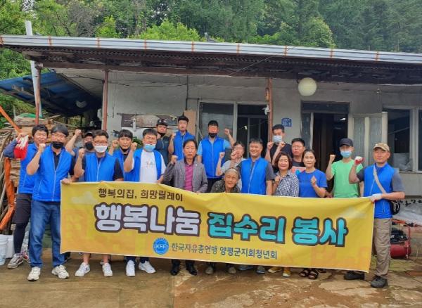자유총연맹 양평군지회 엄길용 청년회장 외 15명의 회원들이 청운면 저소득층 독거노인 집을 방문하여 도배, 못 제거 등 집수리 봉사활동을 하였다. 봉사활동 뿐만 아니라 집수리 자재도 회원들이 조금씩 모은 회비로 구입했다고 밝혀 더욱 더 훈훈한 나눔 실천의 현장이었다.