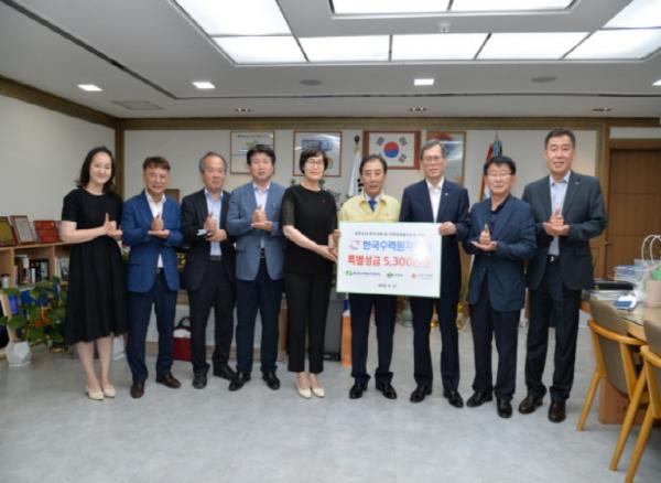 한국수력원자력(사장 정재훈, 이하 한수원) 포천양수사업소는 지난 12일 코로나19 경제위기 극복을 위해 임직원들이 자발적으로 반납한 임금과 회사 특별성금을 더해 5,300만원 상당의 성금과 물품을 포천시에 기부했다.