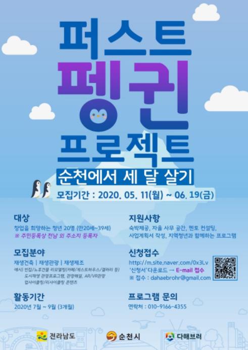 이번 도시재생 창업 프로그램은 순천시와 전라남도가 후원하는 ‘전남 청년 퍼스트펭귄 육성 프로젝트’의 일환으로 도시재생과 로컬관광을 전문으로 하는 사회적기업인 ㈜다해브러가 기획하고 운영한다.