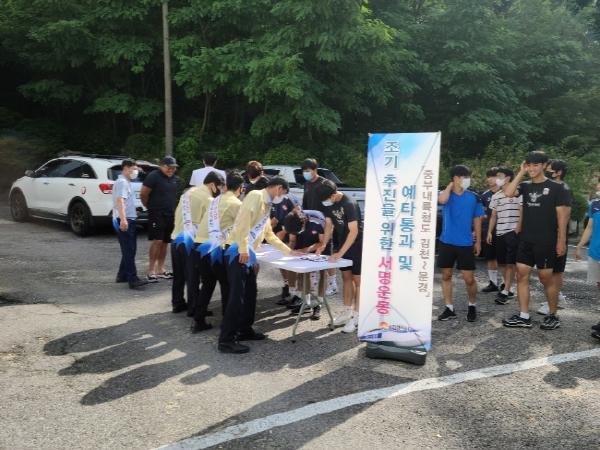 김천시 도로철도과 직원들은 15일 관내 김천대학교, 경북보건대학교를 찾아 학생들을 대상으로 “김천~문경간 철도건설사업” 조기 구축을 위한 서명 운동을 전개했으며, 앞으로 전 시민은 물론이고 대형상가, 관광지 등에서 지속적으로 서명 운동을 하겠다고 밝혔다.