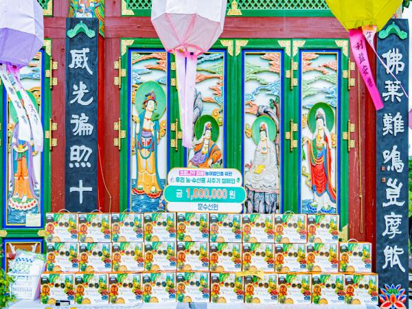 코로나19의 전국적 확산에 따른 힘든 여건에도 부처님의 자비를 실천해온 문수선원은 지난 14일 폭우에도 불구하고 문수선원을 산사순례 차 방문한 양산 미타암 신도 150여명에게 남해 농산물을 홍보하기 위해 1백만원 상당의 농산물 꾸러미 세트를 구입했다.
