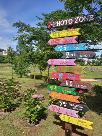 또한, 시는 수국이 개화하는 시기에 맞추어 포토존 5개소에 코로나 19에 지친 사람들에게 희망과 위안이 될 수 있는 메시지를 담은 나무의자와 이정표를 설치했다.