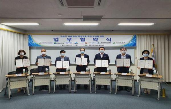 부산시 연제구(구청장 이성문)는 지난 11일 부산지역 장애인 평생교육 활성화 기반 마련 및 차별 없는 장애인 평생학습 환경 조성을 위해 부산인재평생교육진흥원 및 5개 구 장애인 학습도시(서구, 부산진구, 남구, 사하구, 사상구)와 업무협약(MOU)을 체결했다.